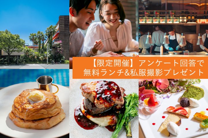 【アンケート回答で無料招待】11/3(月祝)開催 カメラマン私服撮影&レストラン招待 ウィズザスタイルでの結婚式に興味があるカップルを対象に無料イベントを開催いたします。 おふたりの”今”を残していただける私服ロケーション撮影や、当館のフルコースをゆっくりとお楽しみください。 詳細を見る