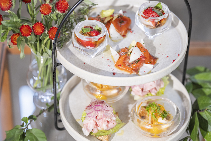 一部セイボリーはティースタンドで優雅にご用意し、テーブルまでお運びいたします。