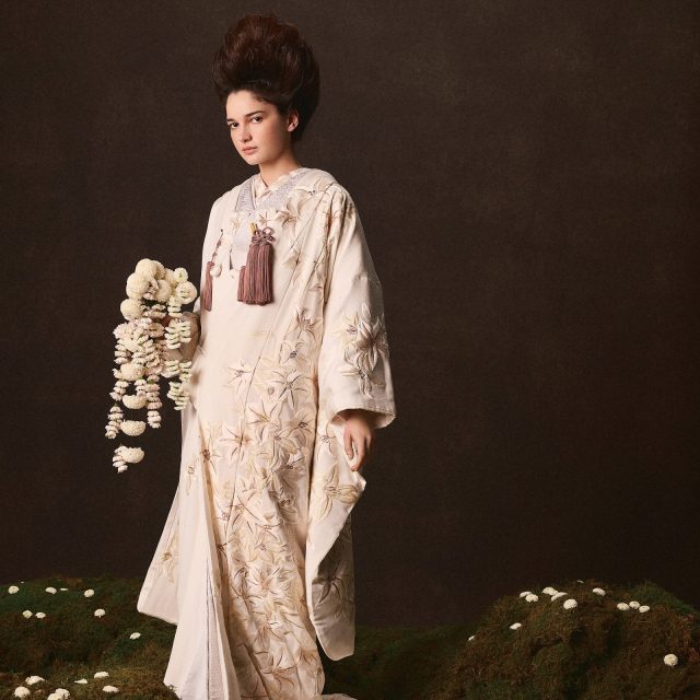 古典の趣や伝統のスタイルを現代の日本女性に似合うテイストに再解釈。和の結婚式は、文化を継承する着物を通じて、改めて日本の伝統を肌で感じるまたとない機会でもあります。白無垢、色打掛、本振袖まで、バリエーション豊富にラインナップした和装のコレクションです。
