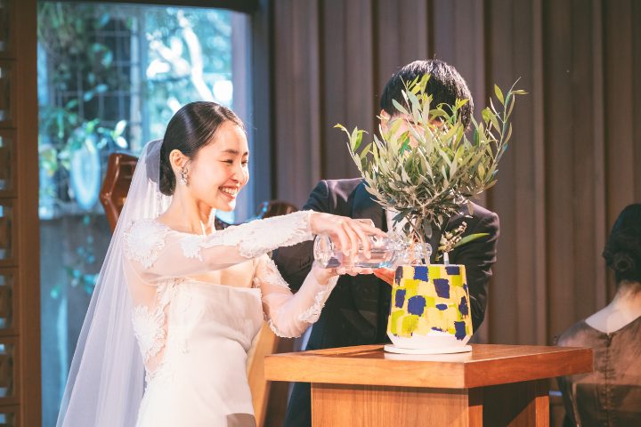 緑に囲まれたチャペルの雰囲気にぴったりな“植樹の儀”